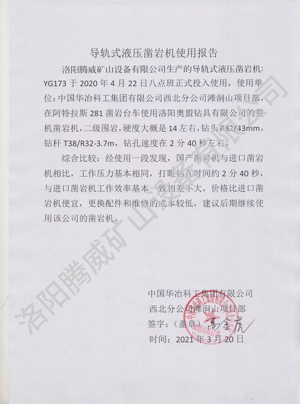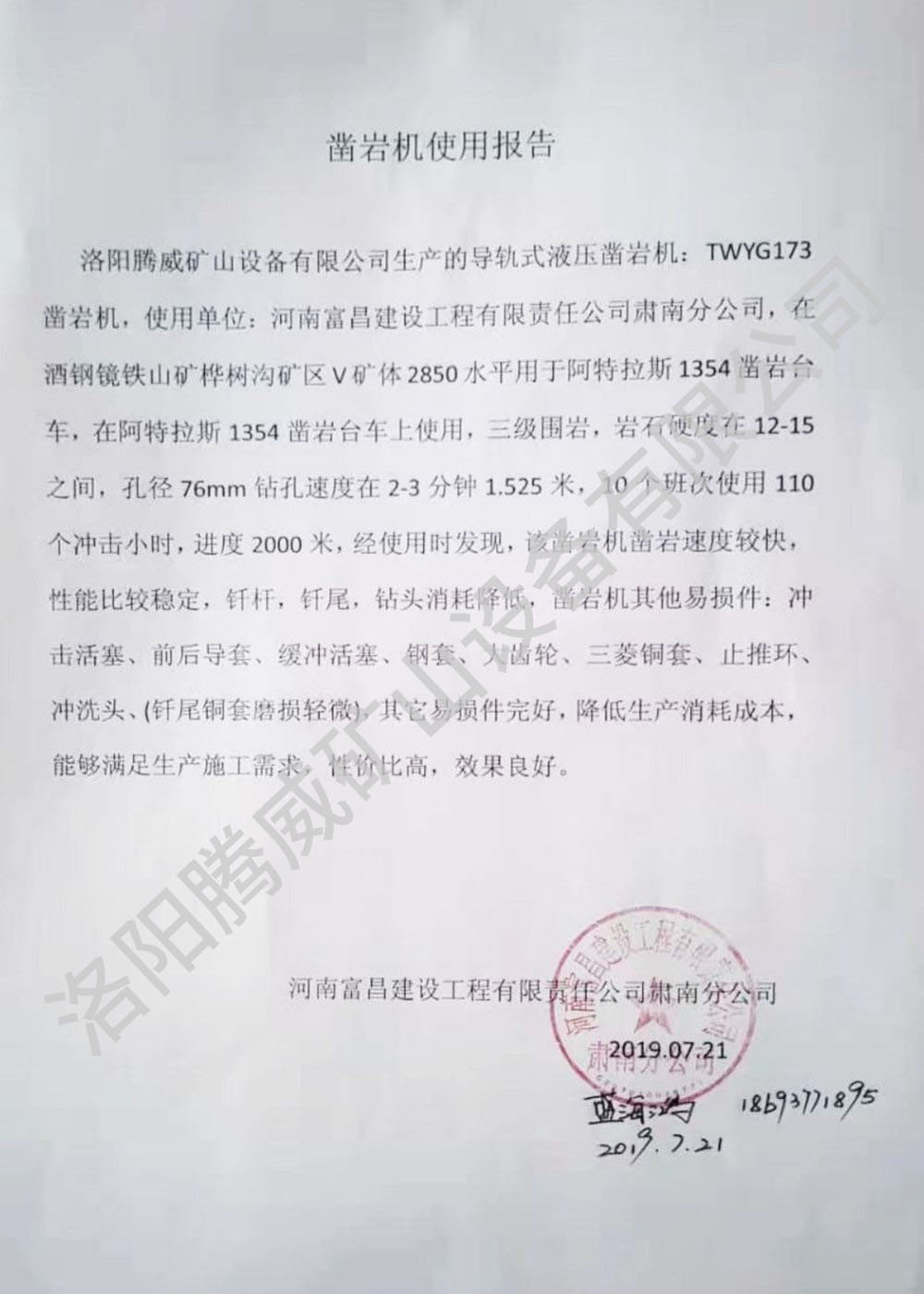 TWYG173導軌式液壓鑿巖機技術參數